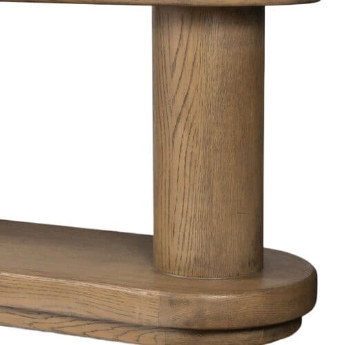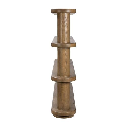 A playful space for books, keepsakes and more. Designed with a contrasting mix of cylindrical pillars and dramatically curved shelves on a plinth base, this wide bookcase is crafted to perfection. Style against the wall or use as a room divider.