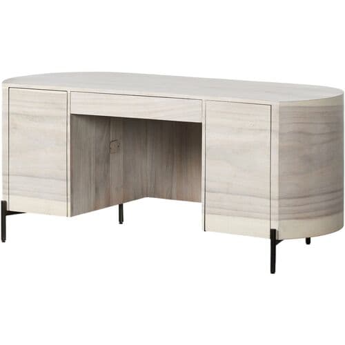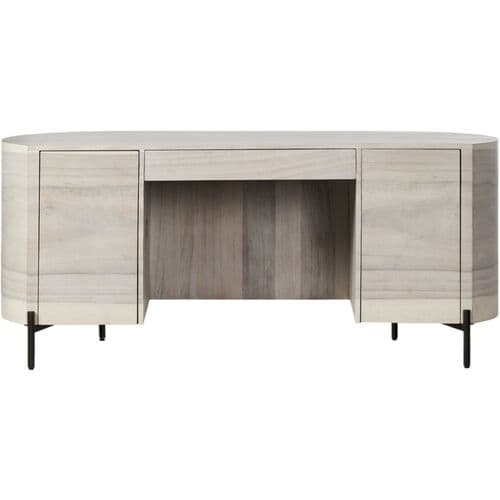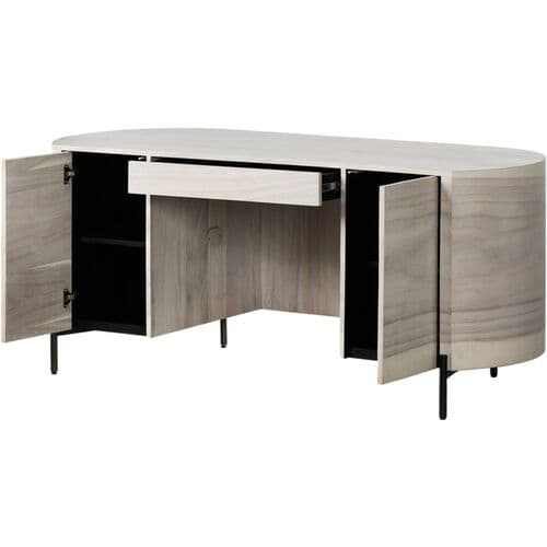 The Luka Executive Desk exudes elegance with its soft, fluid shaping and sculpted silhouette. Crafted with attention to detail, it features dual push-latch doors and interior shelving, providing ample storage space. The fully finished front and back allow for versatile float styling within any room, making it a sophisticated addition to your workspace.