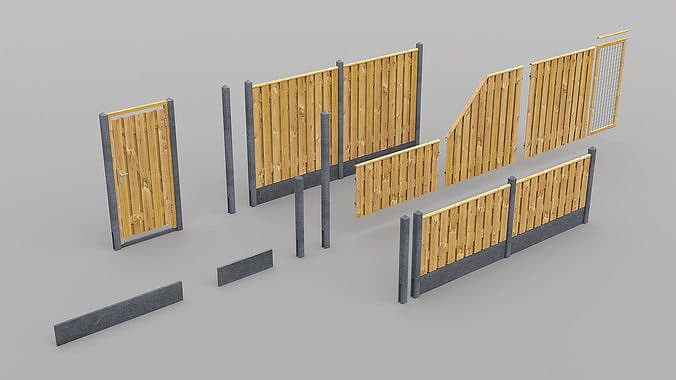 Garden Fence Building Kit - Anthracite poles with pyramid top | 3D model