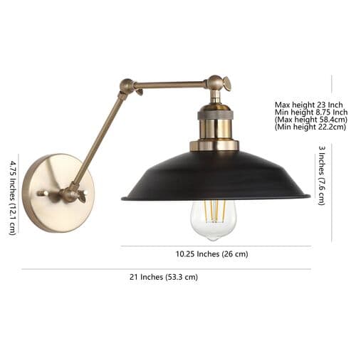 Featuring a black shade and a brass finish, this sconce offers an industrial-chic style with a touch of glamour. Designed for hardwired installation.