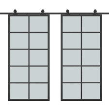 CALHOME 48-in x 84-in Frosted Glass Black Frosted Glass Solid Core Double Barn Door (Hardware Included) in the Barn Doors department at Lowes.com