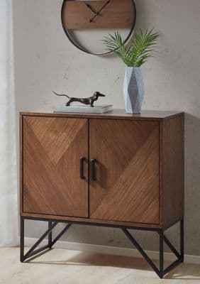 Product Details: • Natural walnut wood finish • Metal base • Magnetic door catches • Assembly required, tools included • Adjustable Shelf Included • Not for clothing storage and bedroom use