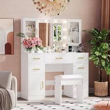 Amazon.com: UGTOO Makeup Vanity Desk with Mirror and 10 Lights, 44.9" Makeup Table with Power Outlet, Large Vanity Desk with Storage Shelf & 5 Drawers, Dressing Table Set, 3 Lighting Modes Brightness Adjustable : Home & Kitchen