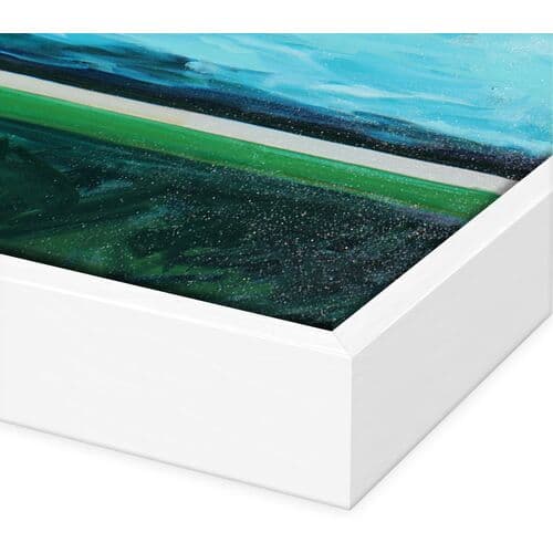 Midcentury snapshots and film stills inspire this piece by T.S. Harris, showcasing a woman swimming on a sunny summer day. Printed on gallery-wrapped canvas, it is displayed in a white pine floater frame and arrives ready to hang. California artist T.S. Harris transforms old black-and-white snapshots, often sourced from flea markets and yard sales, infusing them with vibrant colors. Her work evokes nostalgia, covering subjects like 1940s and '50s film stars and scenes of leisurely summers. Harris brings paintings to life by focusing on each scene, applying textured paintwork, and incorporating a luminous palette.