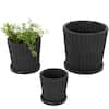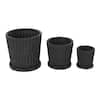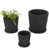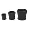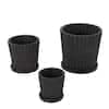 Litton Lane 8 in. 6 in. and 5 in. Small Black Ceramic Ribbed Planter with Attached Saucer (3- Pack) 047084