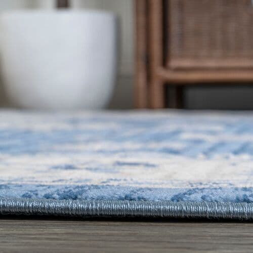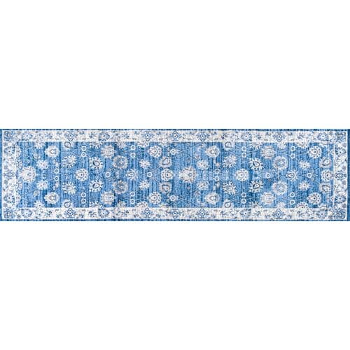 Vintage Oushak floor coverings inspired this polypropylene rug's floral design and intentional abrash—the fading that occurs to fine artisanal rugs over time. The reined-in palette, however, makes the rug a welcome addition to contemporary and traditional spaces alike. A rug pad is recommended to help prevent slipping and extend the life of the rug.