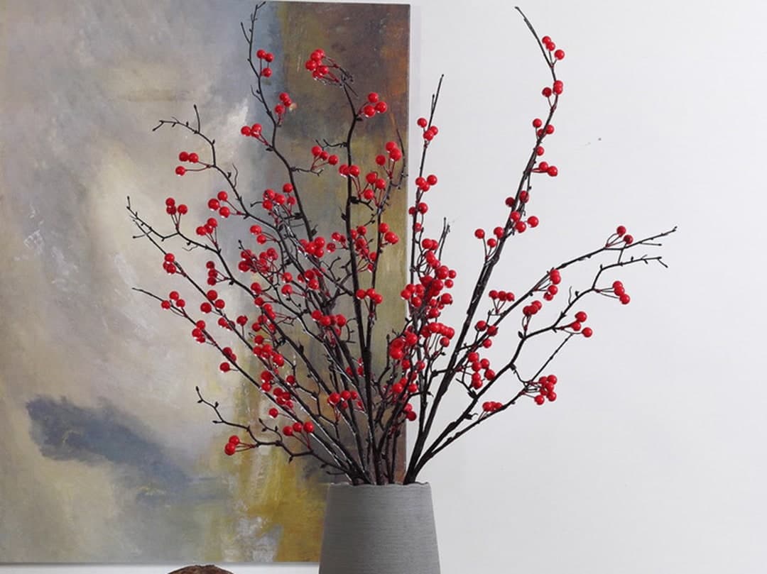 Living Room Floral, Wedding Arrangement, Lounge Vase Filler, Small Fruit Branch, Faux Holly Twig, Long Stem Berry, Artificial Flower, Quality Indoor Spray, Home Sprig Decor, for Outdoor Garden, Window Plant Craft, on Table Centerpiece, Kitchen Decoration