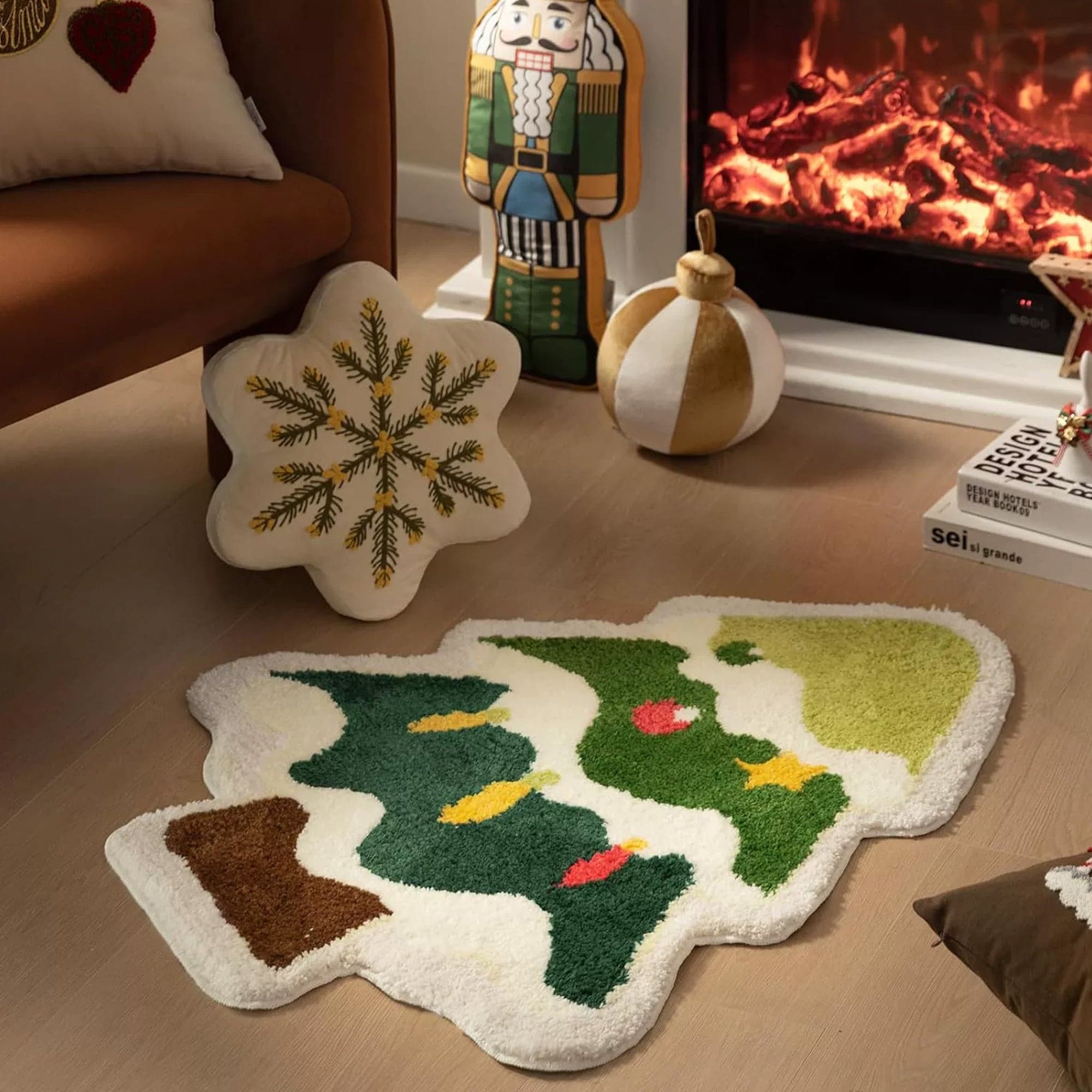 Slashop Festive Christmas-Themed Rug with Santa Trees and Snowmen for Holiday Cheer - Pine Haven