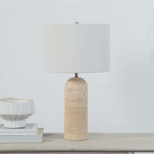 Quorra Travertine Table Lamp - Cream - White | Desk Lamp, Bedside Lamp