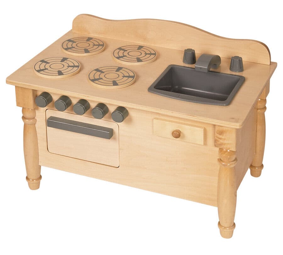 New Guidecraft Child's Compact Floor Style Or 18" Doll Natural Wood Play Kitchen