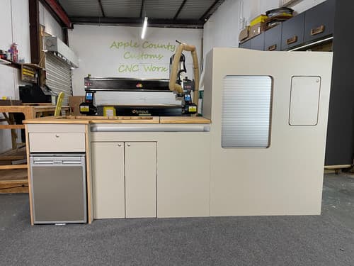 SOLD SOLD SOLD SOLD Available from stock. End of year clearance. Made for the T5/T6 SWB. These units are made from high-end laminated birch ply wood panels. The edges of the ply panels are not edged but are instead left bare and treated with Osmo oil to ensure durability and provide a high quality finish. The bare edges give the units a very natural and premium look and are a great alternative to knock on edge trim. The worktops are made from solid oak wood with a lift up top section and plenty of worktop space for cooking up your own meals. The worktops are also treated with Osmo oil to seal the wood and provide the units with a sheen! These units have a very unique, simplistic but yet stylish look. Our units are available in many unique colours with a few currently in stock.The unit shown in the picture is currently available from stock and ready to be fitted by our competent team, or be taken away for a DIY install. We provide all of the hardware for fitting. This listing includes: Full length unit with higher cabinet section to rear and low level section to front. Table.Oak worktop. Premium table rail and leg. These cabinets are pre-scribed and made to work with lining carried out as separate panels, not one piece ply. If you do not ply line the van this way, you will not get a snug fit, as we have designed them. Please contact us for further information. We can deliver for £40 within a 60 mile radius from BS31 2DE. Please contact us directly if delivery is required, within 60 miles. The price is for supply only, fitting £200.Fridge not included - can be purchased for £650Sink and hob not included - can be purchased for with fittings, water bottle, waste pipe and tap for £415