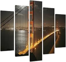 Wallfillers Extra Large San Francisco Golden Gate Bridge Canvas Prints - Night Cityscape Wall Art - Set of 5 Part Canvases - 5038 : Amazon.co.uk: Home & Kitchen