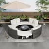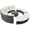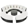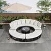 This patio sofa set includes 8pcs sofa and 1pc round table. It can be organized and rearranged in a multitude of ways, catering to your specific needs. The modular design allows you to arrange the tables and sofas in the best way to suit your garden, whilst maintaining the social element.The sectional sofa set features iron frame for long-lasting use, complemented by the all-weather PE rattan that can endure varying weather conditions, waterproof, and durable, ensuring long-term outdoor use. The Large Circular Sofa Set is something quite unique.Highlighted by a robust tempered glass coffee table that adds a sophisticated touch to your patio, this luxury outdoor sofa set ensures you can enjoy your favorite beverage or snack while relaxing outdoors, encouraging convivial gatherings in the comfort of your own garden or patio.