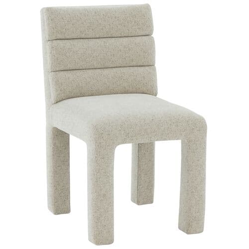 Elevate your mealtime with the sophisticated charm and comfort of our Elstira Dining Chair. Our contemporary dining chair is fully upholstered for a sleek and inviting look. Its plush contours are highlighted with a stunning channeling detail upon the back. With a generously cushioned back and padded seat, our dining chair offers a comfortable stay long after the meals are over. It is designed to lend sophisticated and soft visual appeal to your dining area.