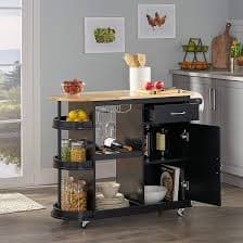 Amazon.com - Christopher Knight Home Debby Kitchen Cart with Wheels, Black, Natural - Bar & Serving Carts