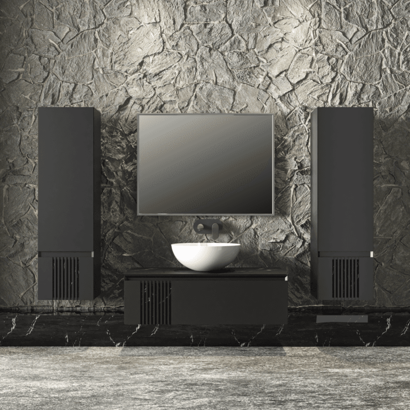 Standard Set Includes Vanity with Washbasin Revolutionary collection DELUX: imposing furniture for special interiors. ? This stylish collection is designed