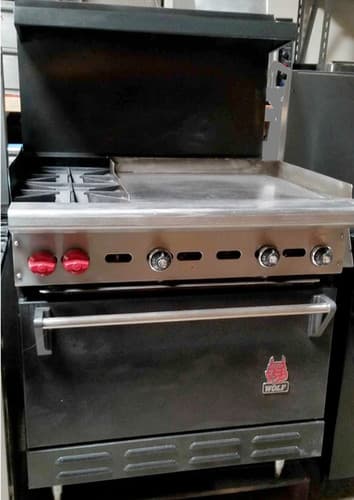 Used Wolf 36" Range, 2 Burners, 2' Flat Top Grill