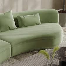 Modern Curved Right Sofa Recliner in Green, 94"L x 45"W x 28"H, Flannel