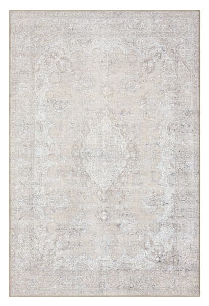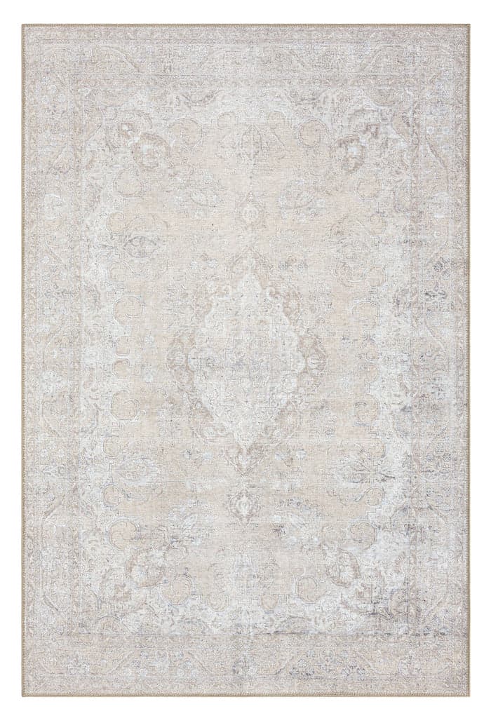 Tinka Beige and Grey Traditional Distressed Washable Rug - Miss Amara