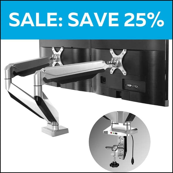 Dual Monitor Arm: Easily adjust to support an ergonomically correct standing desk. Sit or stand more comfortably while reducing neck, eye, and back strain.