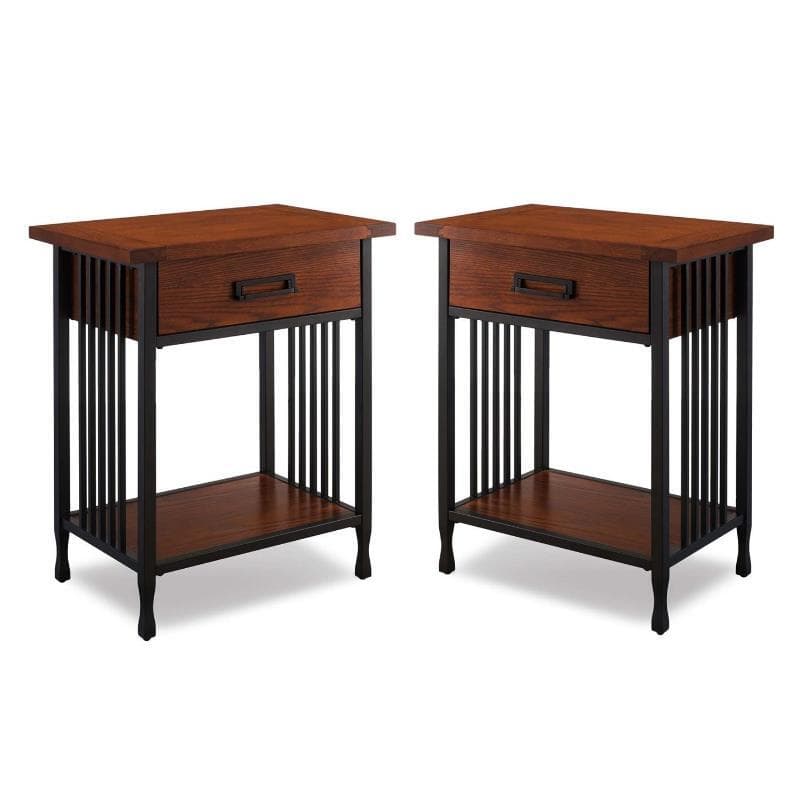 Home Square 2-Piece Furniture 1-Drawer Nightstand Set in Mission Oak