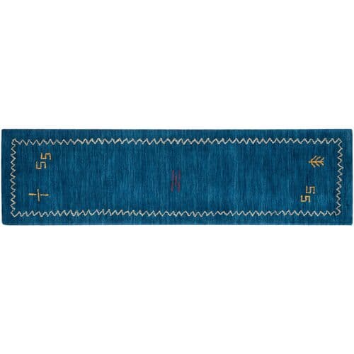 This wool rug adds distinction with its overdyed blue hues, strategically placed tribal patterns, and thick, plush pile. Use a rug pad to extend its life and maintain stability.