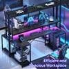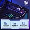 The 71 in. LED Computer Desk is designed for both gamers and professionals, featuring built-in power outlets for convenient device charging. This L-shaped desk includes a hutch and a monitor stand, providing ample space for multiple screens and accessories. Additionally, it comes with a storage shelf to keep your workspace organized and clutter-free, making it a versatile and efficient addition to any room.