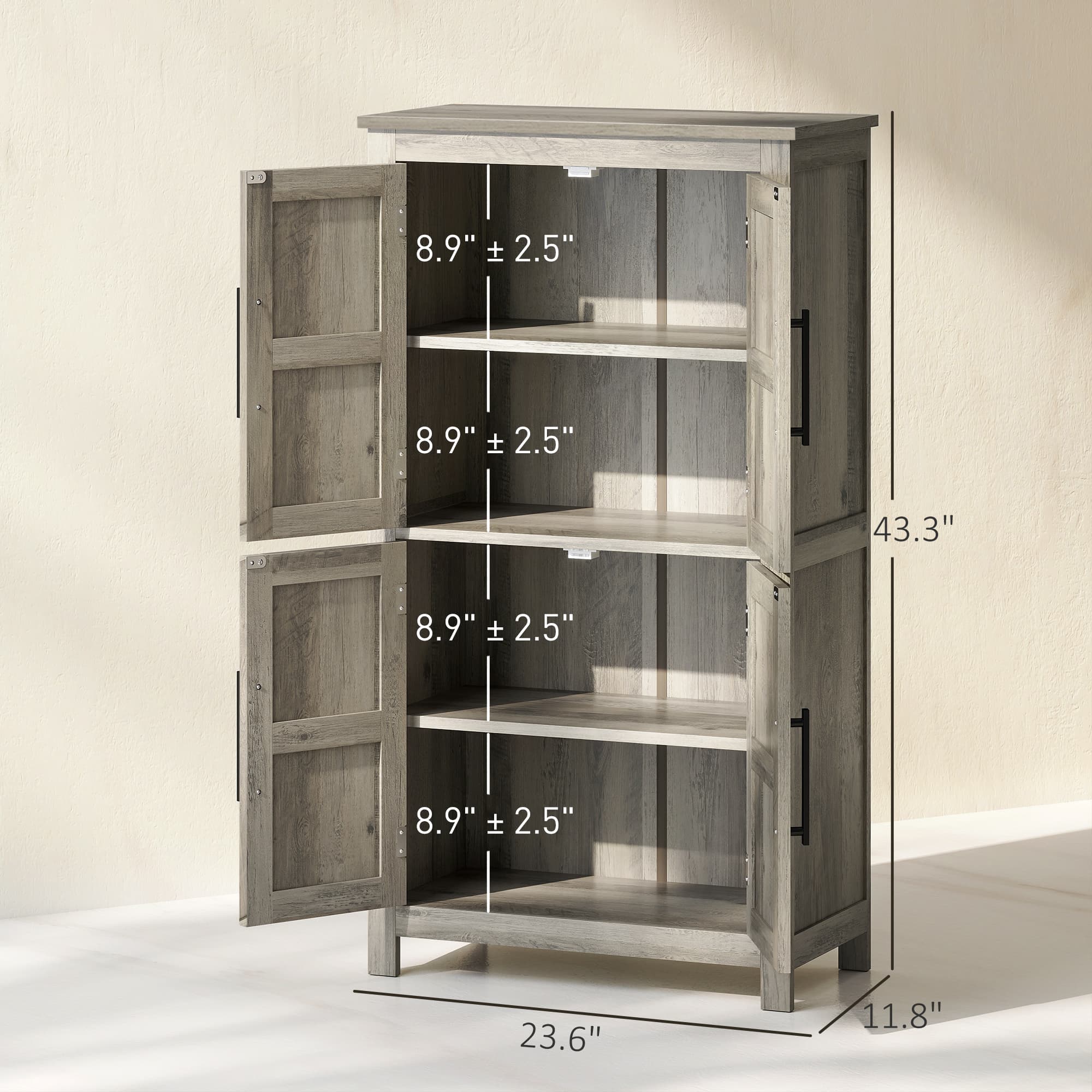 HOMCOM Bathroom Freestanding Cabinet, Farmhouse Bathroom Cabinet with Doors and Three-Level Shelf, 23.6" x 11.8" x 43.3", Light Gray | Aosom.com