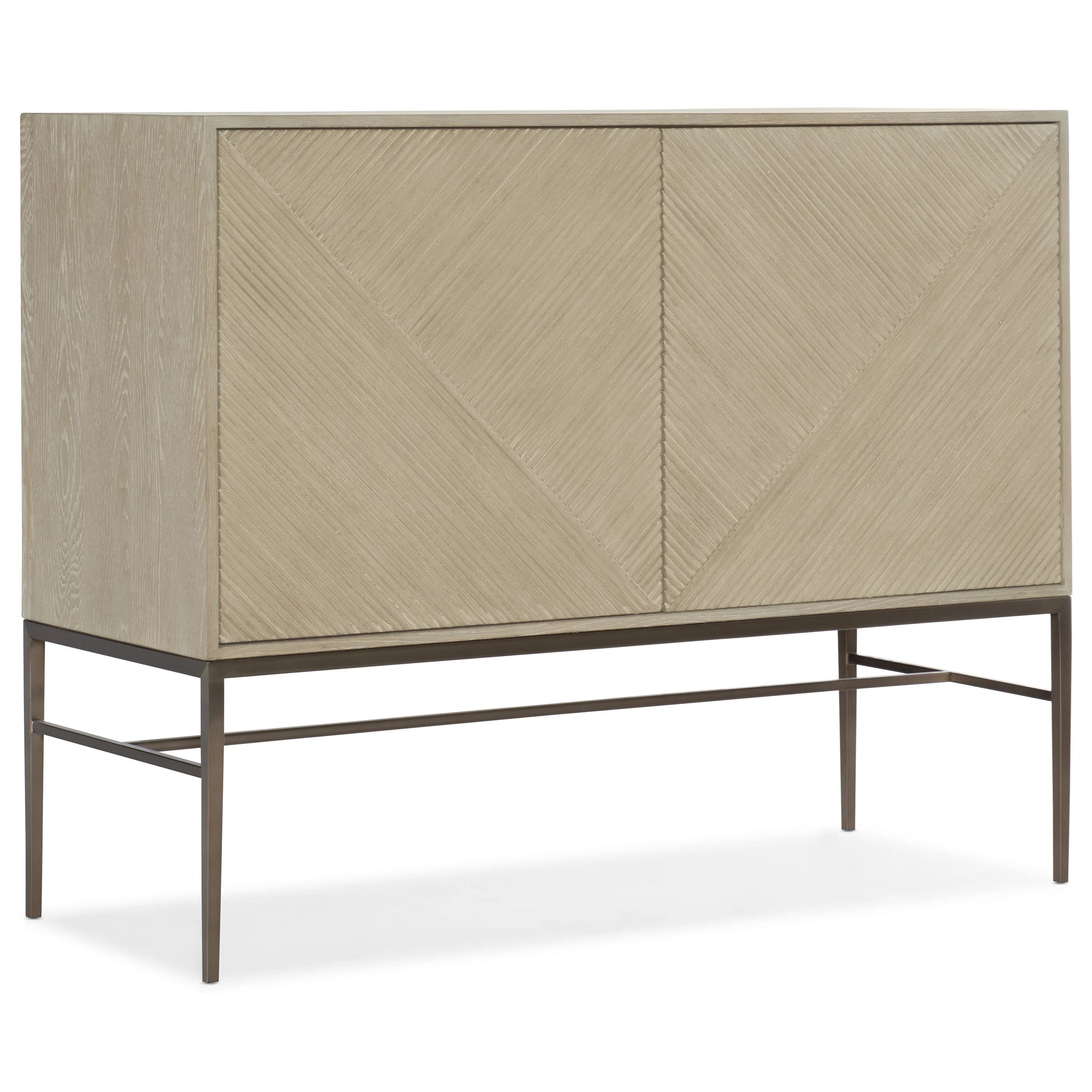 Add a stylish modern piece to your home with this contemporary accent chest. The geometric reeded door fronts add a subtle detail to this piece while the metal base adds a light and airy feel. With soft-close doors and an adjustable shelf, this piece will make a great addition to any space.