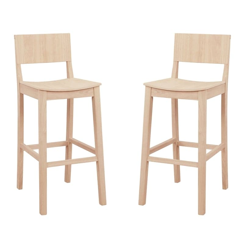 Linon Burke Saddle Seat Bar Stools Set of Two in Unfinished Solid Rubberwood