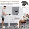 Upgrade your work space with this ergonomic electric standing desk While others are still struggling to sit to work with terrible pain and tiredness,you can change your posture from sitting to standing just by pressing the button to lift the tabletop. The high-quality motor achieves the height adjustment quickly and smoothly. And you can feel free to put your full work setup atop the desk,not only because of the 55 in. x 28 in. spacious tabletop, but also for the sturdy construction that ensures stable and wobble-free lifting. In addition, there is a built-in cable grommet and cable organizer to help you avoid a tangled mess.