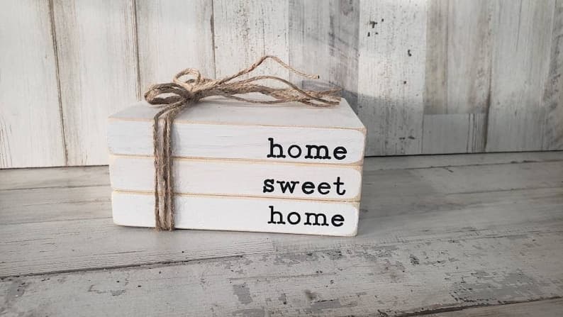 Home sweet home mini faux wooden books.