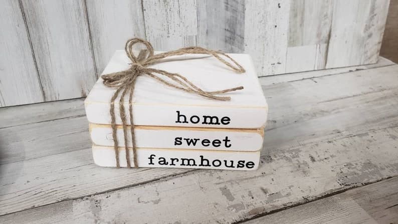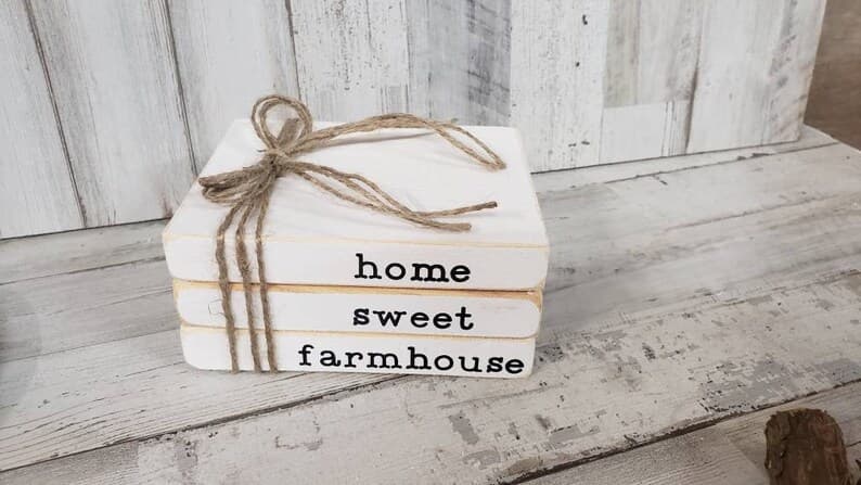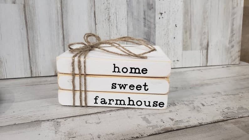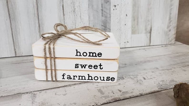 Home Sweet Home Wooden Books / Faux Wooden Books / Tiered Tray Books / Book Stack / Tiered Tray Sign / Wood Block Books / Farmhouse Decor