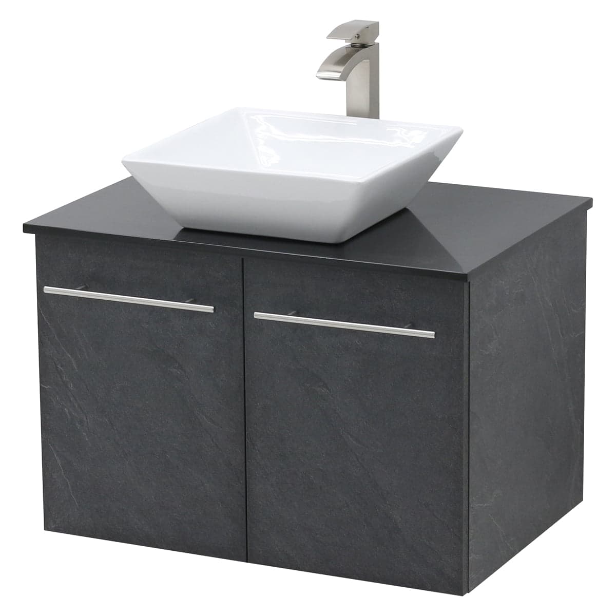 WindBay Wall Mount Floating Bathroom Vanity Sink Set. Dark Slate Grey Vanity, White Flat Stone Countertop Ceramic Sink - 36"