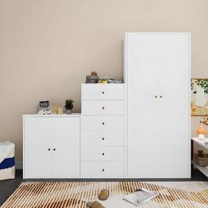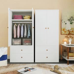 Chalk Metal Children's Wardrobe with 2 Shelves, 2 Drawers, 2 Doors, and Clothing Rod, 35"L x 20"W x 79"H, Without Legs