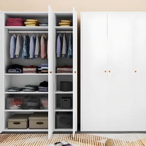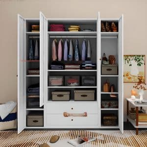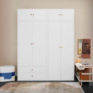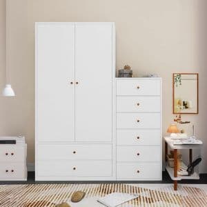 Chalk Metal Children's Wardrobe with 2 Shelves, 2 Drawers, 2 Doors, and Clothing Rod