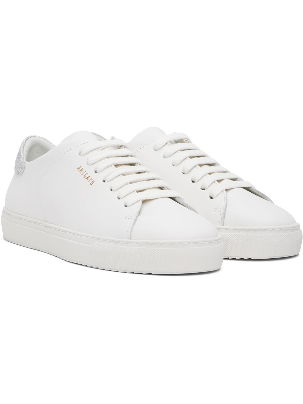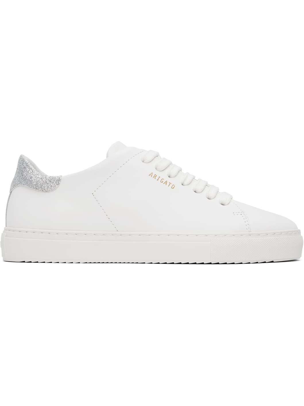 • Lace-up closure • Logo stamp at outer sides • Silver-tone glittered leather heel tab • Buffed leather and microfiber lining • Treaded recycled rubber sole Supplier color: Off white/Silver