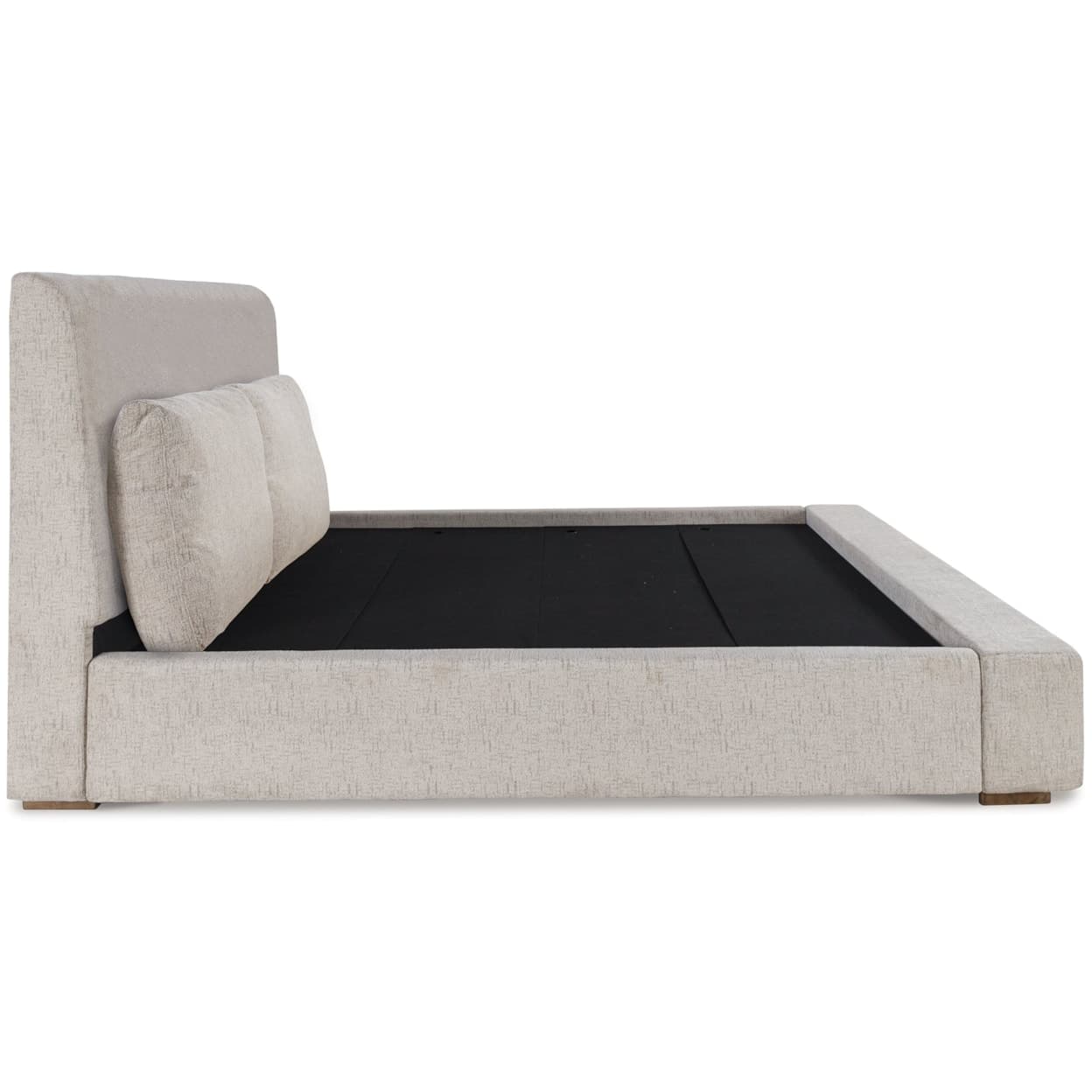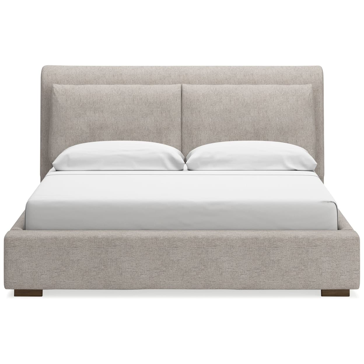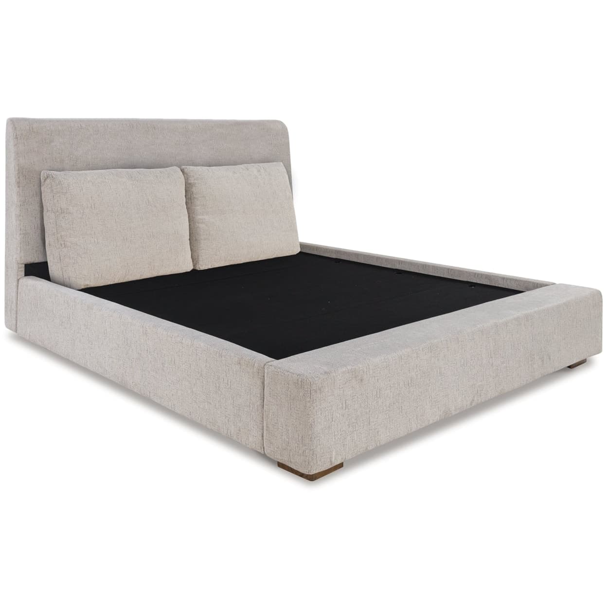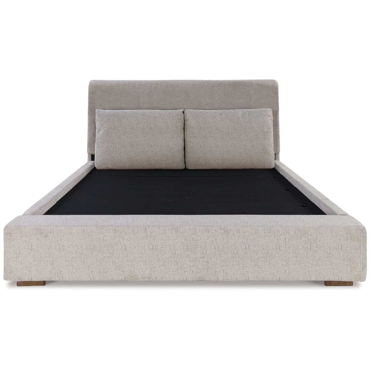 This California king upholstered bed sits comfortably at the intersection of modern lodge and farmhouse aesthetics. Your warm and welcoming disposition is reflected in its subtly tapered headboard and all-over upholstery. Even with its poise, the bed remains practical. Loose pillows on the headboard keep comfort a priority as you lay back to read or watch TV, defining your bedroom with reliable function and style.