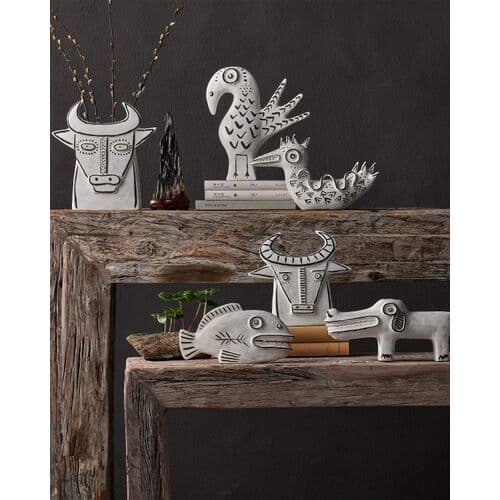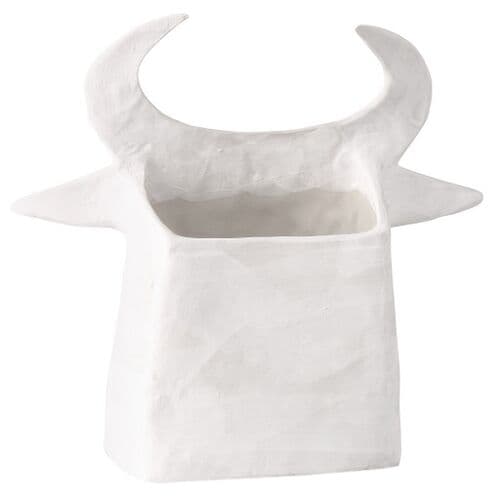 Artist Xiang Yang, a brilliant ceramist, took a walk on the wild side when he created Frank the Bull. Made of porcelain with whimsical details painted by the artist, the haunting vessel will create a stir not unlike Picasso's work did during his ceramics period as he experimented in the South of France.