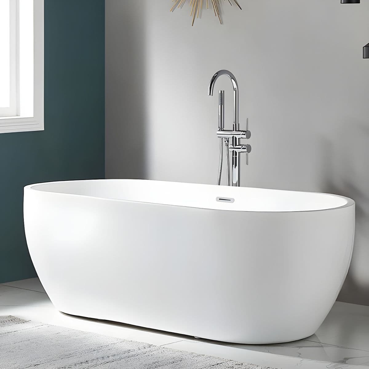Modern White Acrylic Bath Tub Oval Freestanding Bathtub for Home