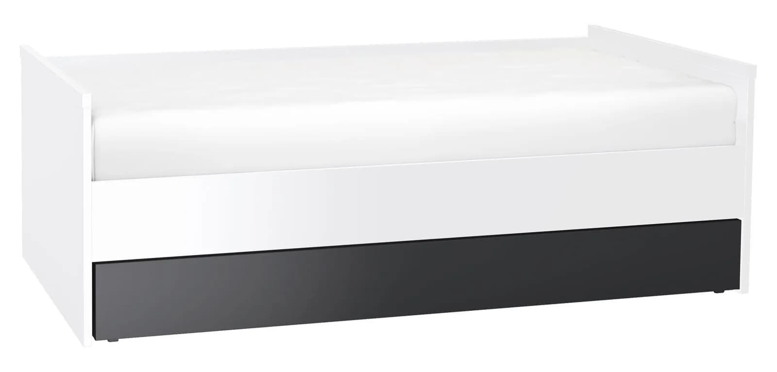 Aus der Serie: Marincho Sofort lieferbar. Die Jugendzimmerserie Marincho begeistert durch eine Vielzahl an praktischen, sowie ästhetischen Besonderheiten. Die Möbel lassen sich dank ihrer neutralen Grundfarben nicht nur in beinahe jeden Raum integrieren, sondern eröffnen Ihnen auch einen großen, kreativen Spielraum bei der Wahl der passenden Dekoration. Das Kinderbett / Jugendbett Marincho 89 harmoniert perfekt mit den weiteren Möbeln der Serie. Es ist mit einem aufklappbaren Rahmenlattenrost ausgestattet, unter dem sich ein Stauraum für Bettwäsche, Polster und Co verbirgt. Zudem ist ein praktisches Rollbett inkludiert, welches sich mühelos an den benötigten Ort bewegen lässt und im Handumdrehen eine zweite Schlafgelegenheit schafft. (Abb. zeigt Kinderbett / Jugendbett mit Matratze. Diese ist im Lieferumfang nicht enthalten.)