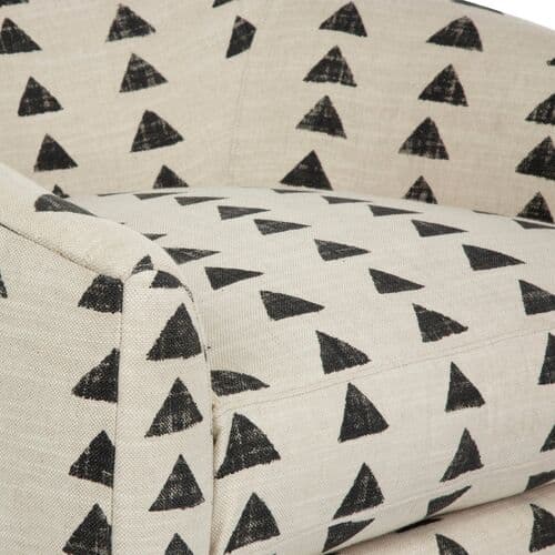 Featuring a hardwood frame and a barrel-style design, this chair offers ample padding and finely tailored upholstery. Handcrafted with care in the USA.