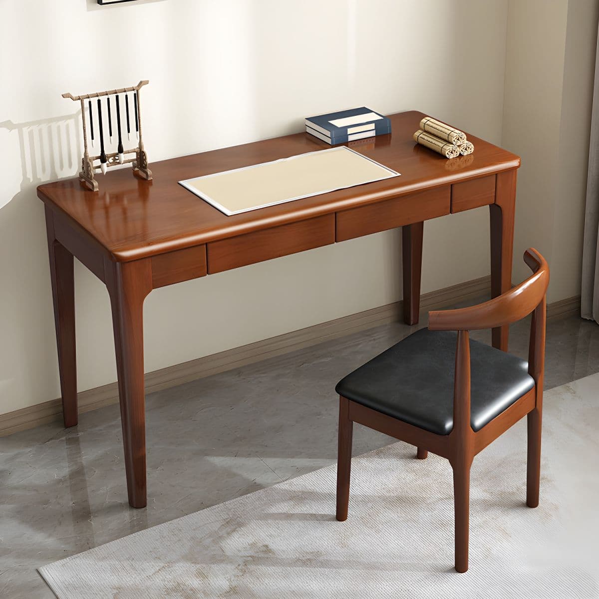 2 Drawers Office Desk Solid Wood Curved Writing Desk with Wooden Legs - 39.4"L x 21.7"W x 29.5"H Walnut Table Only