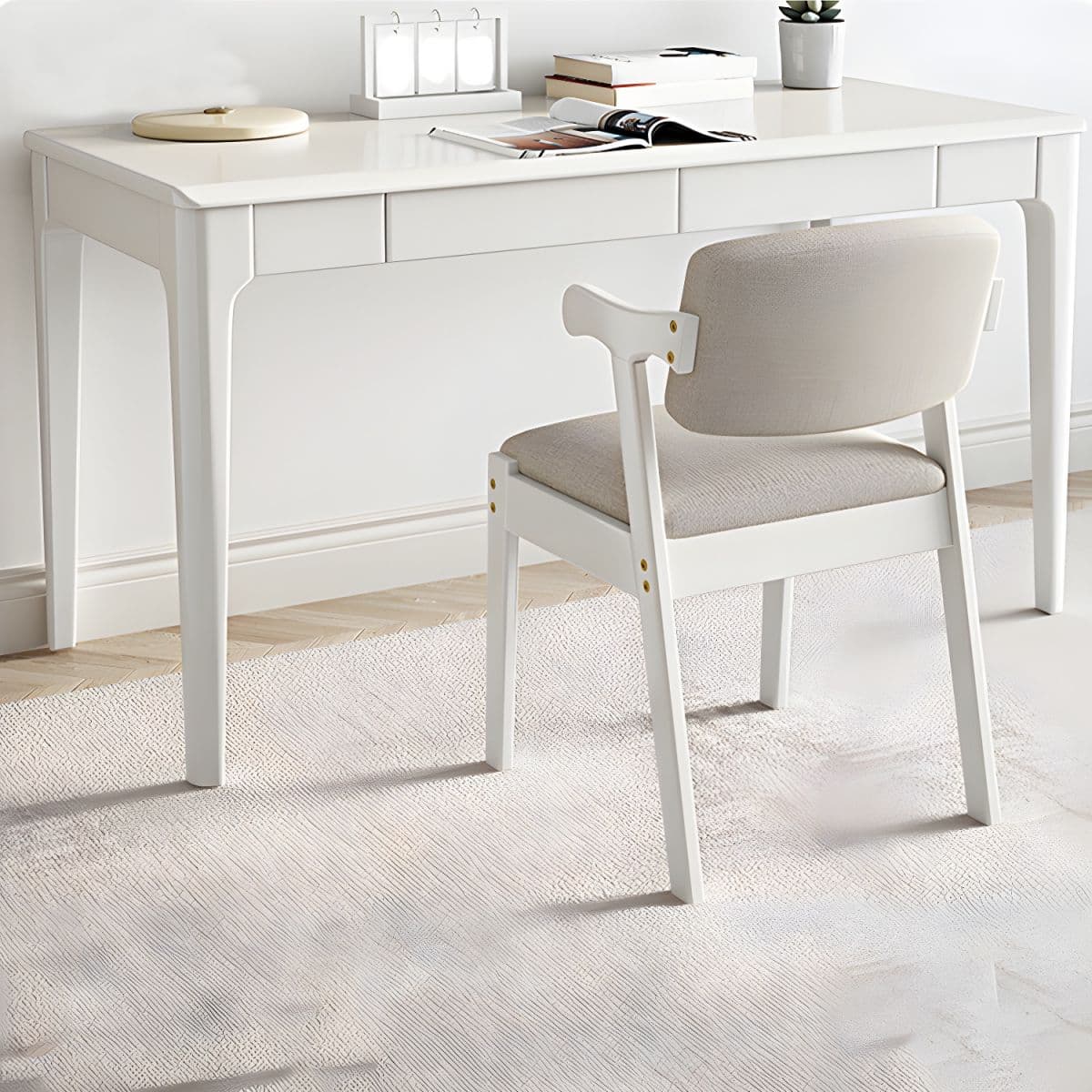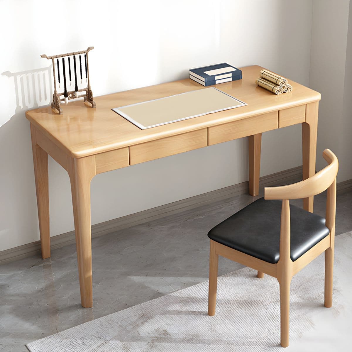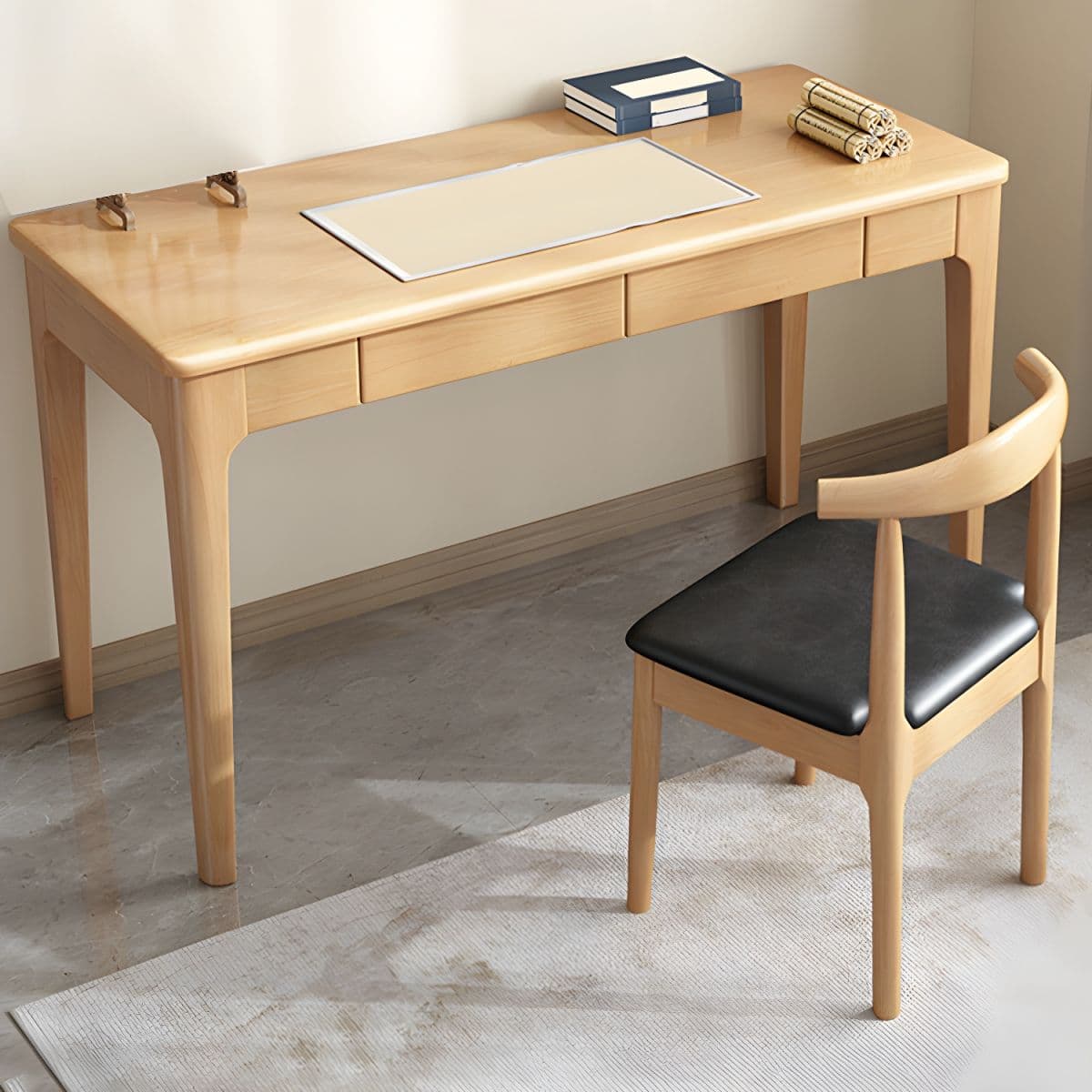 2 Drawers Office Desk Solid Wood Curved Writing Desk with Wooden Legs