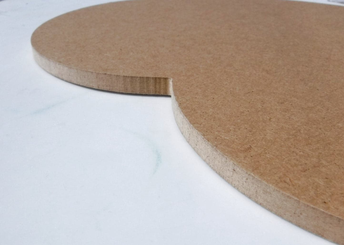 This heart is a 8" x 7 1/4" (20.3 x 18.4 cm) rigid dense fiber board base. It is thinner than many other surfaces at 1/4" (0.635 cm) thick. That makes it great for lighter projects, including painting and decoupaging. I've seen these used with fluid pour painting with outstanding results! It can also be used for mosaicing. It is recommended that you seal dense fiberboard prior to using it. A clear sealant or a even a sligthly diluted high quality white glue (such as Weldbond) will work.