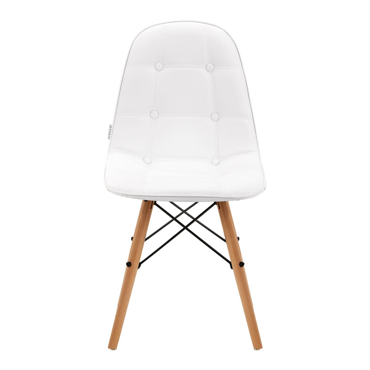The 4Rico furniture combines functionality and comfort. The hockers and make-up chairs available in their offer are distinguished by a wide selection of patterns, colors and upholstery materials. They will be a sophisticated accent of any space – both in professional and home use. Ergonomic chair with wooden legs. The stylish 4Rico QS-185 chair on wooden legs is characterized by timeless elegance and minimalism. It will perfectly fit into both modern and more classic interiors, giving them a unique expression. The aesthetics of workmanship, ergonomically profiled backrest and comfort of use make the chair meet the requirements of even the most demanding users. It is distinguished by its versatile use – it is ideal for professional salons, beauty salon, nail styling, office or elegant reception, but it will also be perfect for home use. Comfortable chair in a Scandinavian style. The seat is filled with foam and covered with upholstery made of pleasant-to-the-touch synthetic leather in shades of white, which is very easy to keep clean. Small stains and dirt can be easily removed with a slightly dampened cloth. Aesthetic quilting and careful stitching provide an elegant touch, while the metal frame in shades of black adds stability to the furniture. Matte-finished legs are finished with plastic protections, additionally protecting against accidental damage. The chair in the Scandinavian style is a comfortable piece of furniture that will become a decoration of the reception area of any beauty salon. The exact dimensions are given in the photo. Included: seat, metal frame, 4 legs, assembly kit. Upholstery material: synthetic leather. Upholstery color: shades of white. Frame color: shades of black. Legs color: beech wood