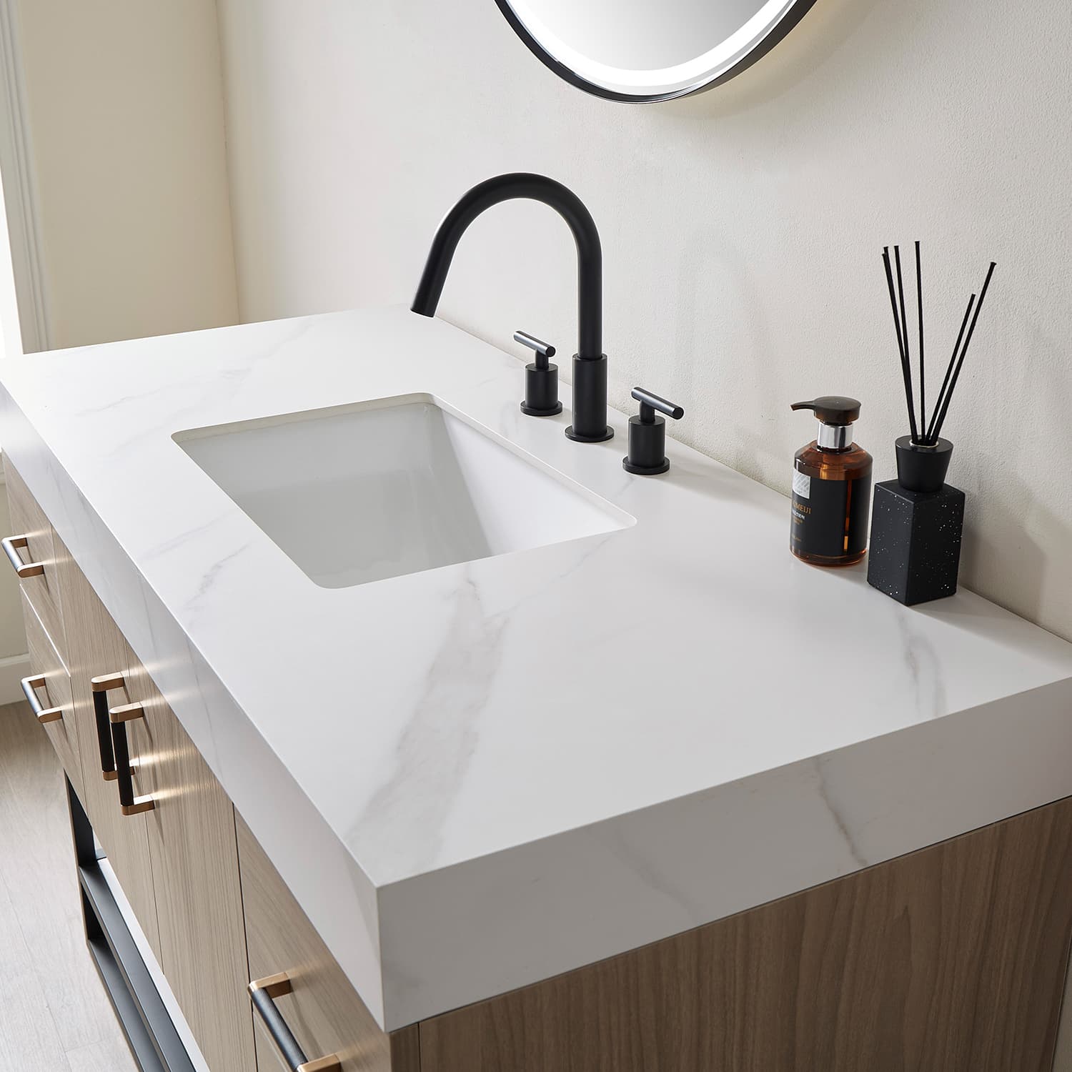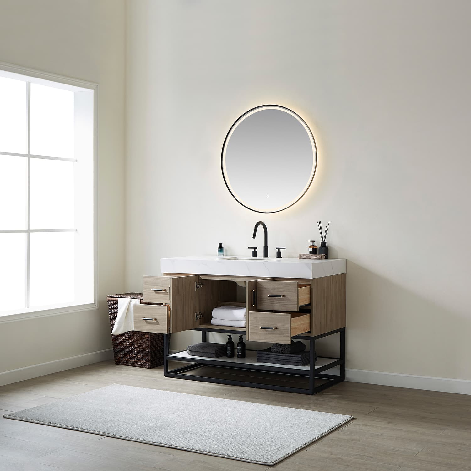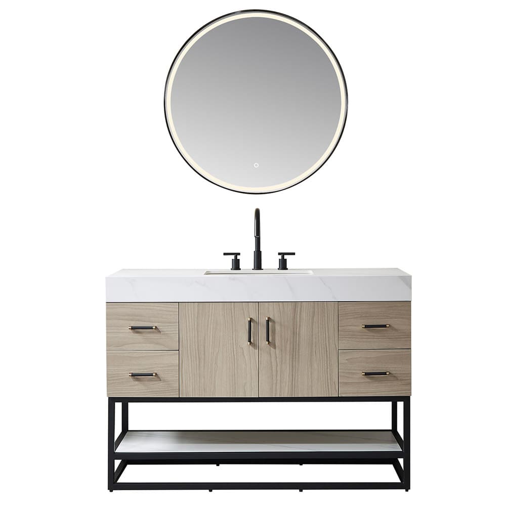 48"Single Sink Bath Vanity in Light Walnut with White Sintered Stone Top