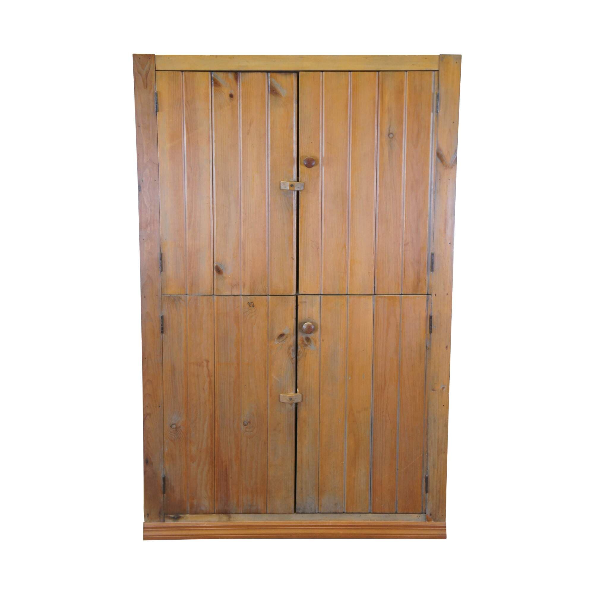 Antique American Country Farmhouse Pine Beadboard Corner Cabinet Pantry Cupboard