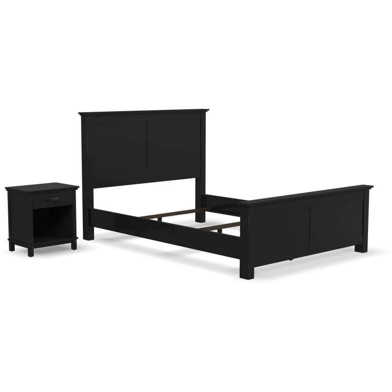 Uncomplicate your life with the simple beauty of the Oak Park collection. The Oak Park Queen Bed & Closed Nightstand by Homestyles, are expertly crafted, with clean lines and intelligent design. Solid mahogany combined with engineered wood creates an attractive and durable piece. The headboard and footboard feature a timeless double panel design. The nightstand offers a convenient place for all your bedside items, and the added space below is perfect for storing books, tablets, and more. Painted in a classic black finish, this craftsman-style bedroom set will fit right in with existing furniture, or help you create a new look.