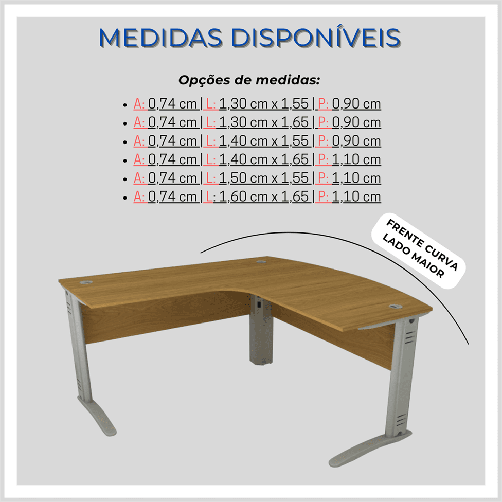 A Mesa Delta Curva Gerência da linha Impéria Premium é a escolha perfeita para elevar o nível de elegância e eficiência do seu escritório. Com um design sofisticado e materiais de alta qualidade, essa mesa oferece um ambiente de trabalho confortável e funcional. Tampo Durável: O tampo da mesa é confeccionado em MDP de 18mm, proporcionando durabilidade e resistência. O acabamento com fita de borda de 2mm garante um visual refinado. Frontal de Madeira: O frontal é fabricado em MDP de 18mm, mantendo a uniformidade estética da mesa e proporcionando um toque de requinte. Pés de Aço: Os pés são feitos em aço com pintura epóxi antiferrugem, oferecendo estabilidade e robustez. Além disso, contam com uma calha para passagem de fios e niveladores de altura ajustáveis. Medidas Disponíveis: A mesa está disponível em diferentes medidas para se adequar às suas necessidades: